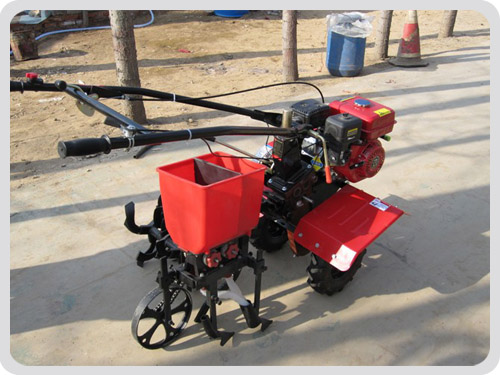 機(jī)器標(biāo)準(zhǔn)配置:一套旋耕機(jī)、一套播種施肥的作業(yè)輪、一個(gè)播種施肥耬、一個(gè)耘鋤